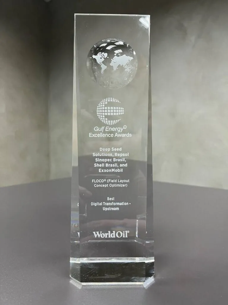 Deep Seed Solutions, in collaboration with Repsol Sinopec Brasil, Shell Brasil, and ExxonMobil, won the Best Digital Transformation – Upstream category at the Gulf Energy Information Excellence Awards 2023 for our technology, FLOCO®. This prestigious award highlighted the significance of our innovations in the global energy industry.